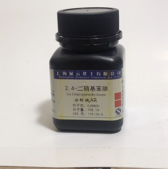 2,4-Динитрофенилгидразин - кристаллы красного цвета, растворим в этилацетате; малорастворим в бензоле, сероуглероде и этаноле; не растворим в воде и в диэтиловом эфире.