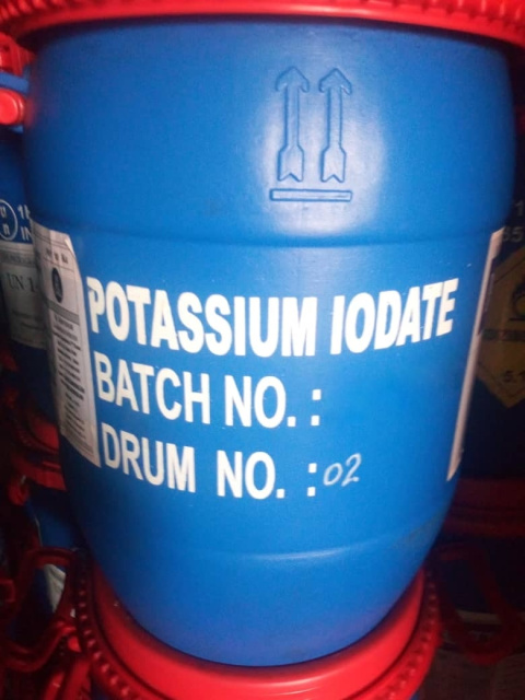 Калий йодноватокислый (Калий йодат) - белый кристаллический порошок, растворим в воде.